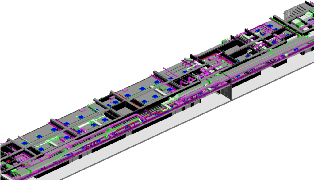 MultiCAD carried out full MEP coordination including full BIM to PAS1192-2 on the client’s Common Data Environment (CDE) and COBie specifications, at each information exchange, in line with the Asset Information Requirements (AIDP).
